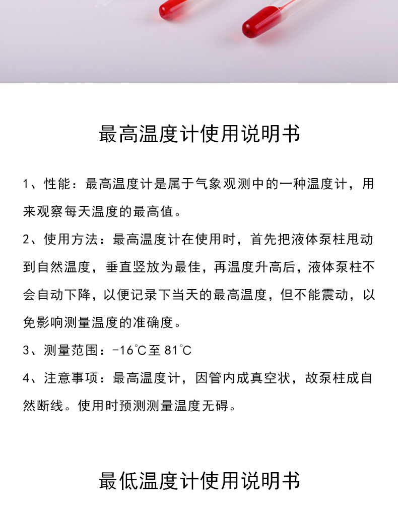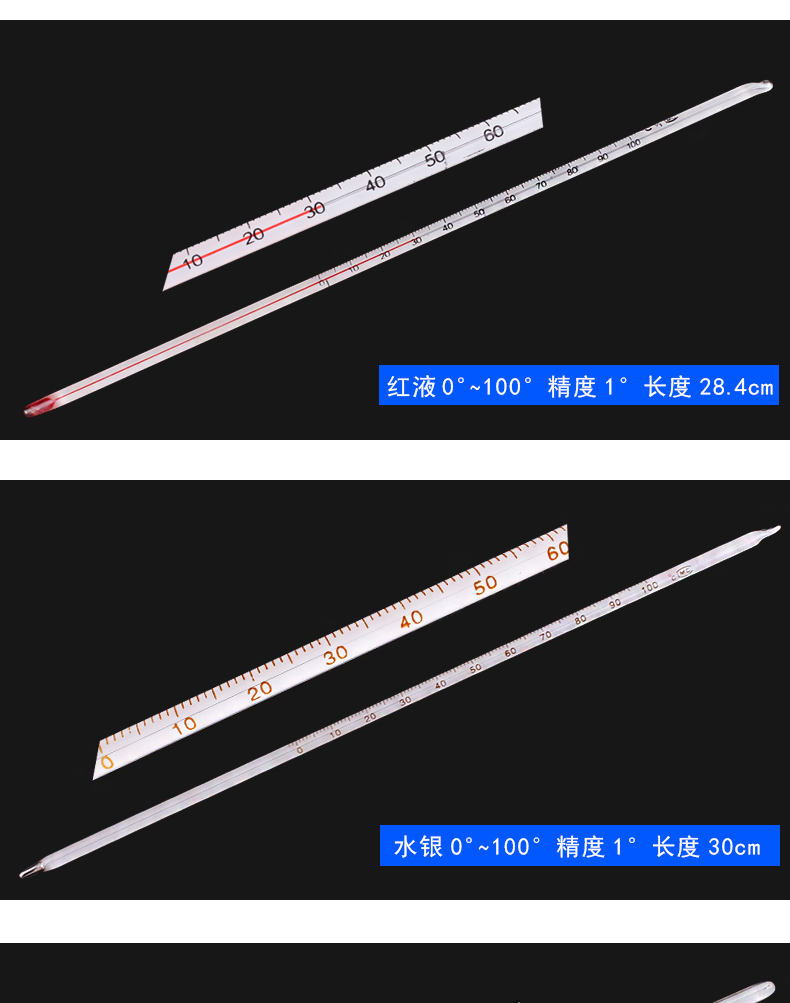 红液/水银玻璃温度计0-100°/0-200°/-50-+50°/-30°-100°/最低温度计-50°-40°/最高温度计-20°-80°