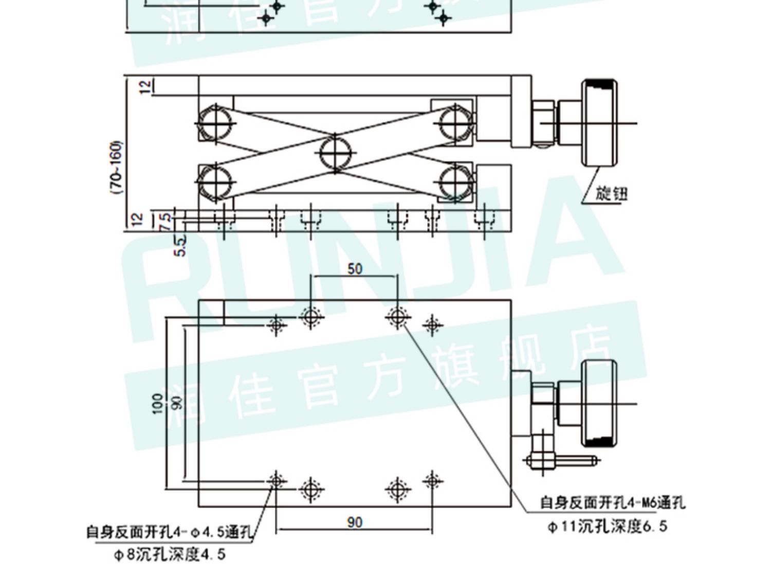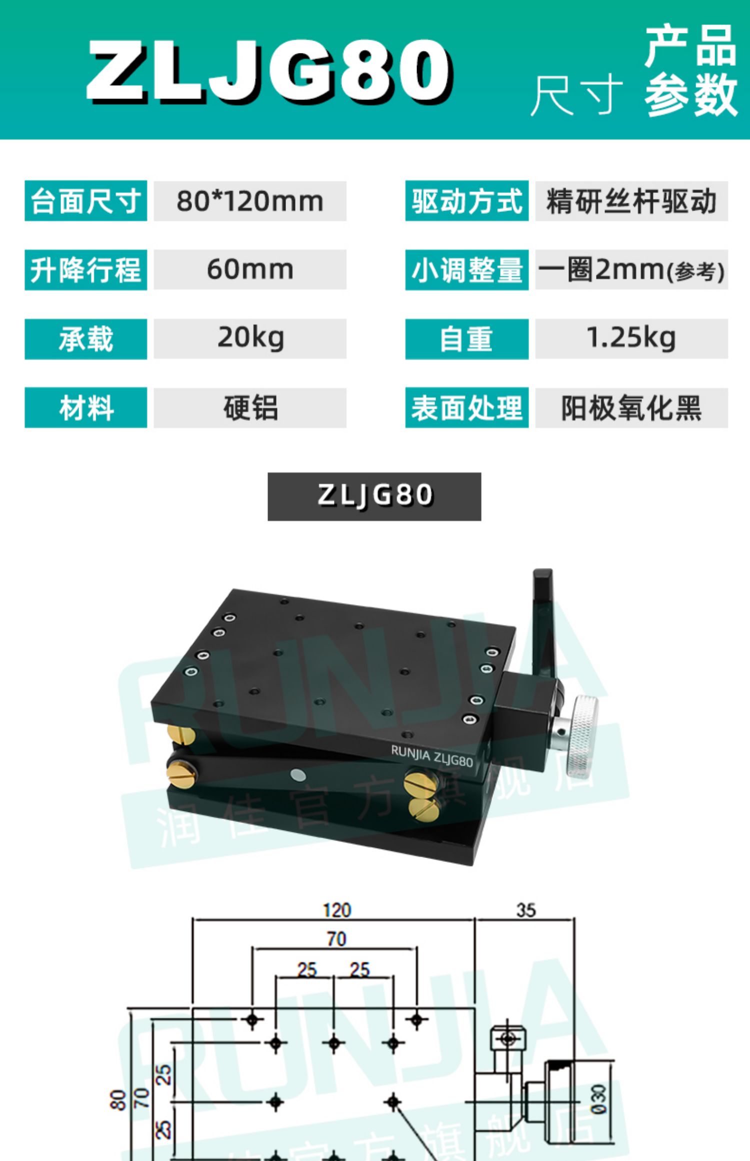 Z轴剪式手动升降台光学实验升降平台精密微调位移台ZLJG60/80/120