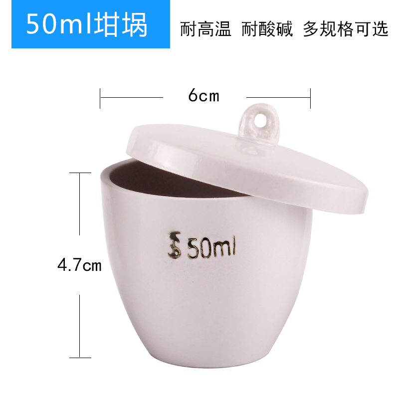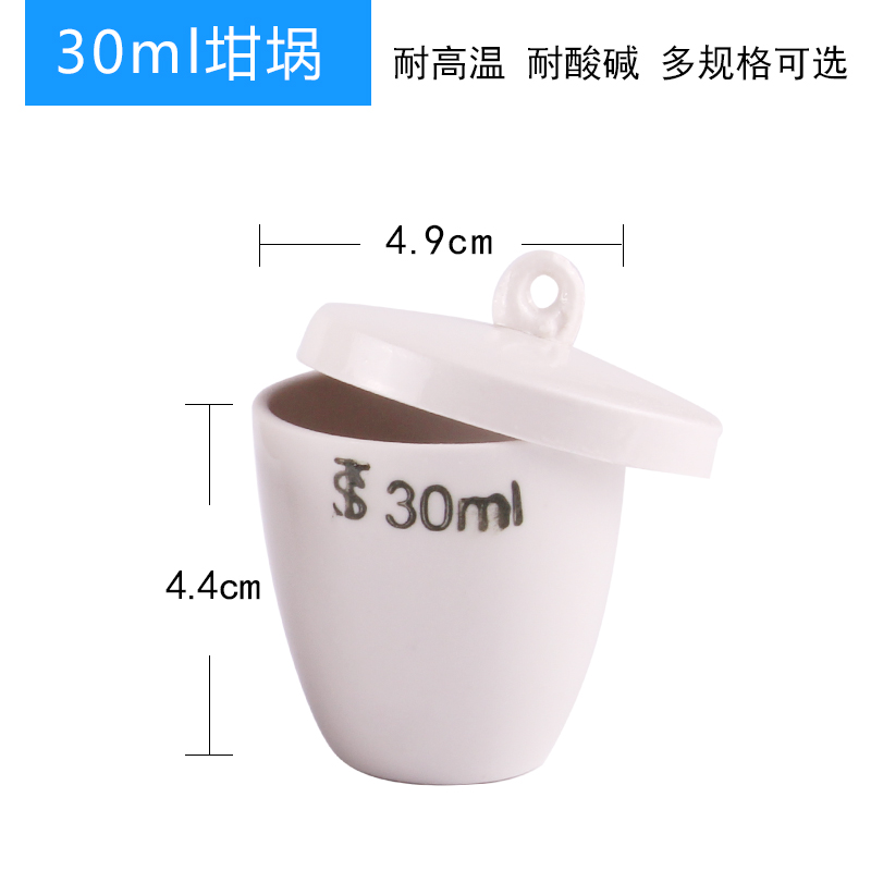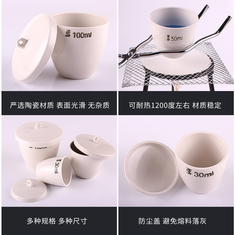 陶瓷坩埚带盖耐高温1200度氧化铝瓷中锅化学实验室器皿教学演示用器材坩埚钳泥三角30ml50ml100ml