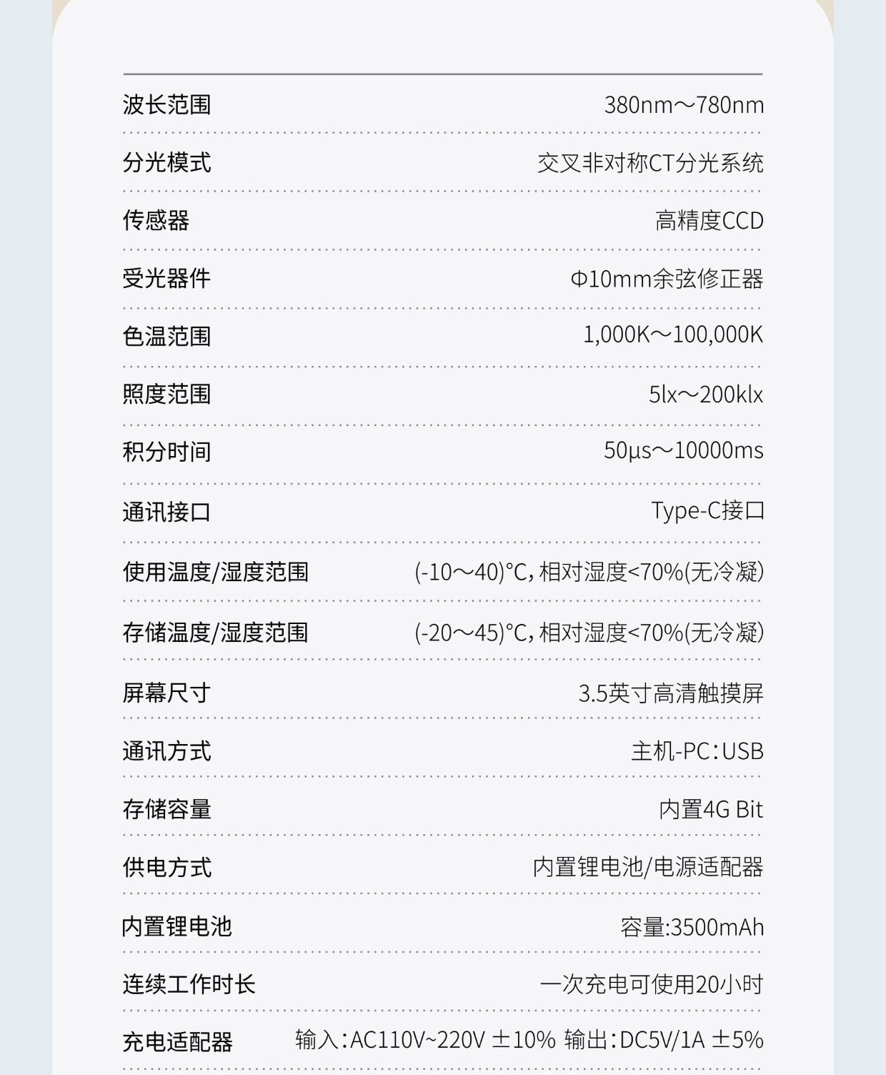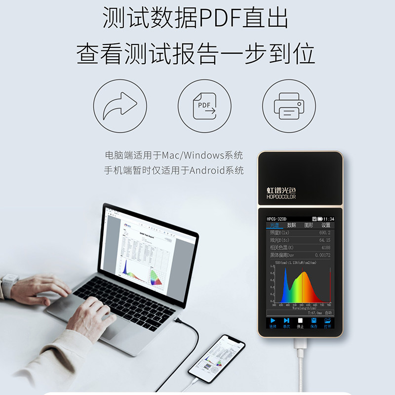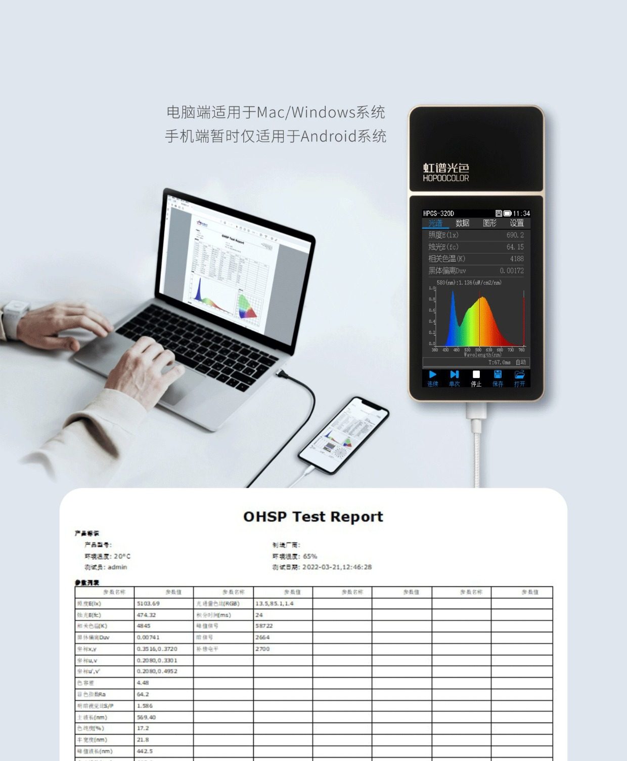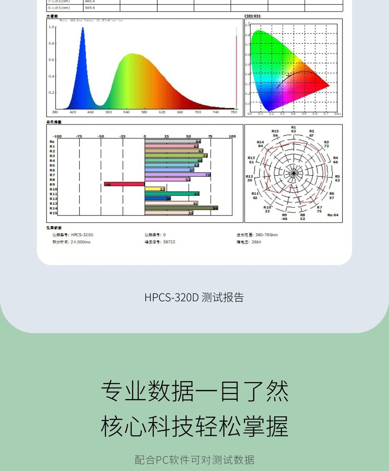 虹谱HPCS320D光谱彩色照度计色温仪波长检测仪手持LED灯具显指RA