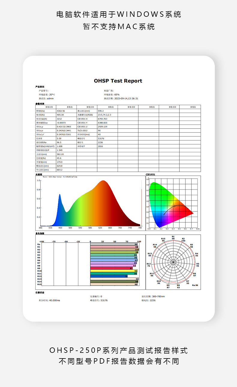 OHSP250P植物PPFD光谱照度仪色温计波长显指测试可见光光纤光谱仪