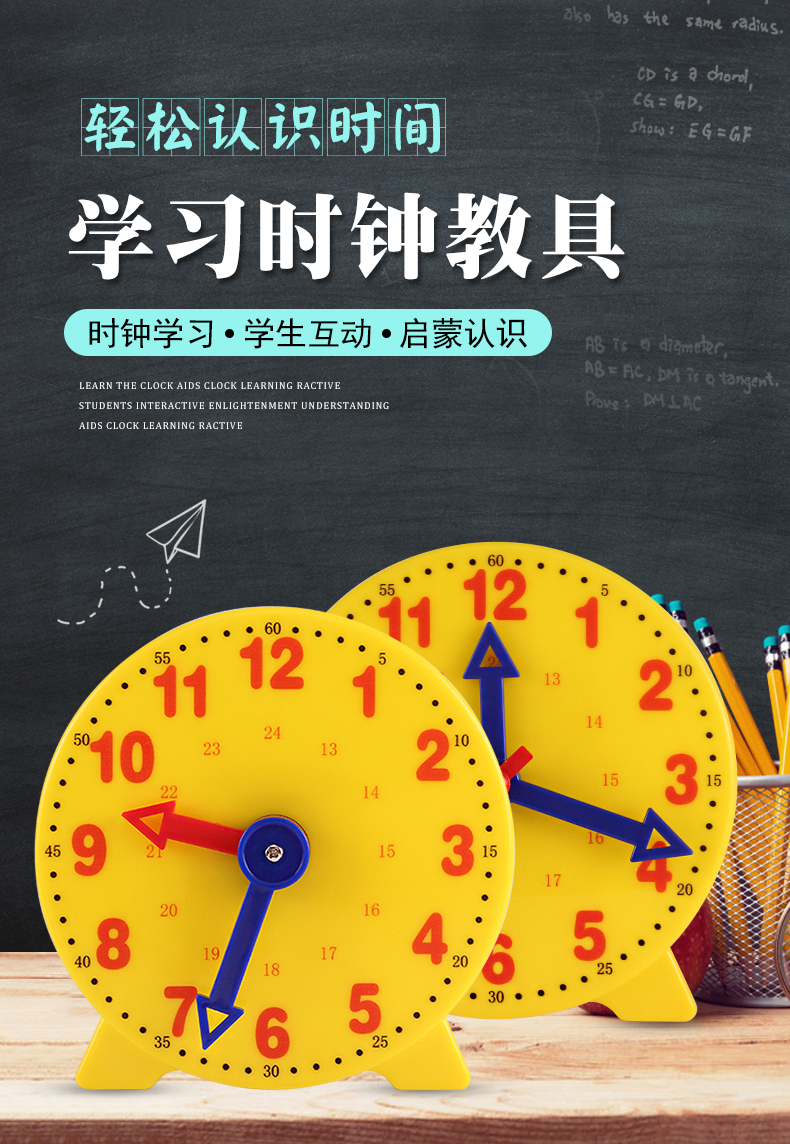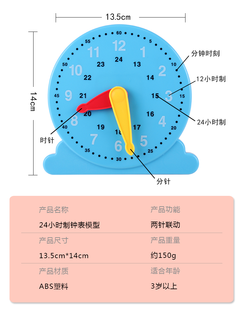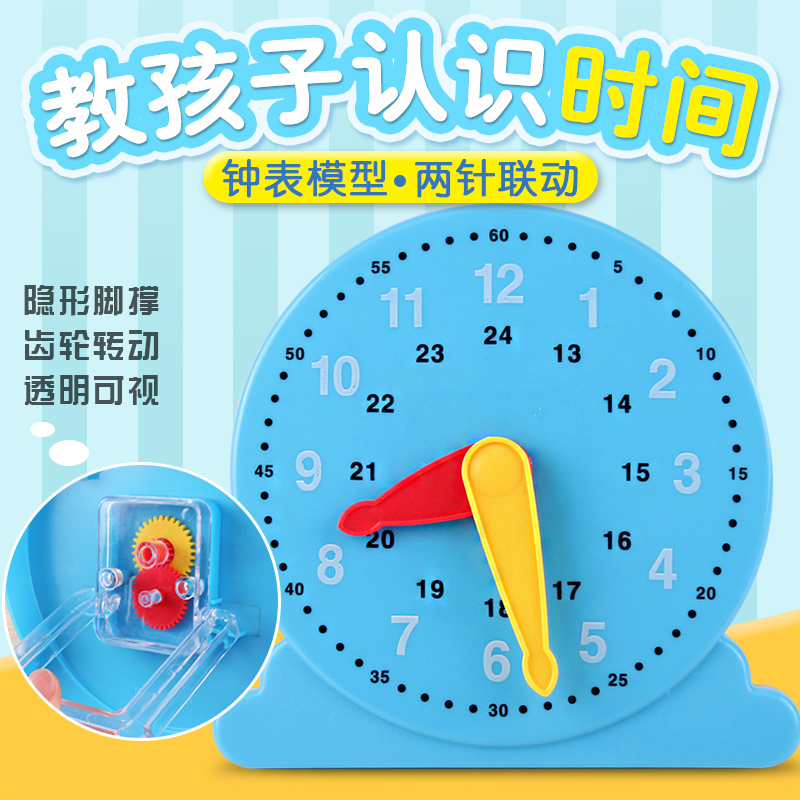 钟表小学教具模型学生用三针联动钟面模型 一二年级小学生数学用具认识时间时钟钟面学具12时24时小学教学
