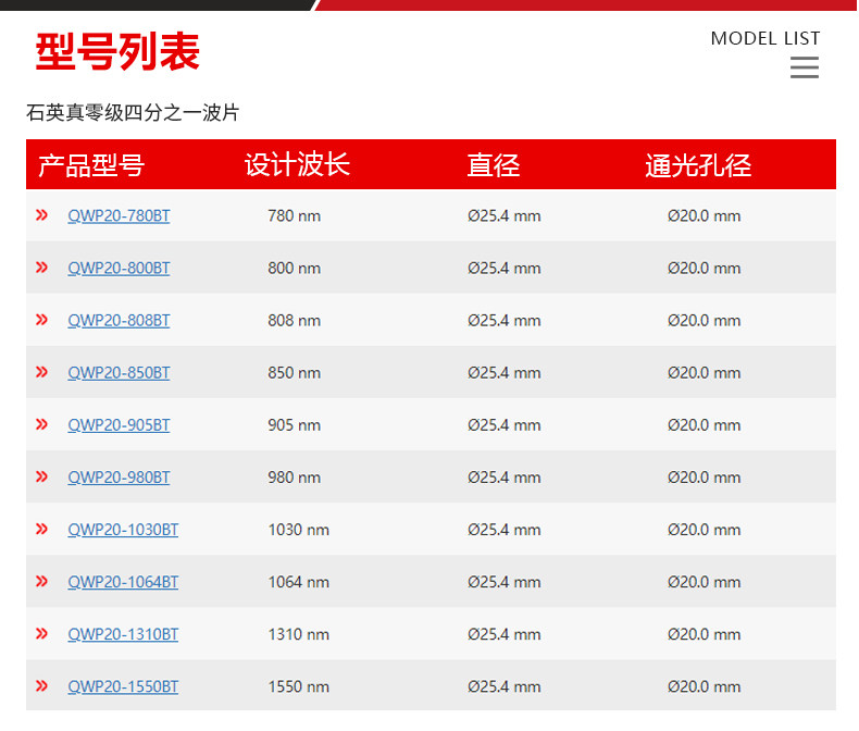 | QWP20-1064BT【波长1064 nm】 | ¥ 登录可见 | ¥ 登录可见 | 9999 件 | 750308202902 |
