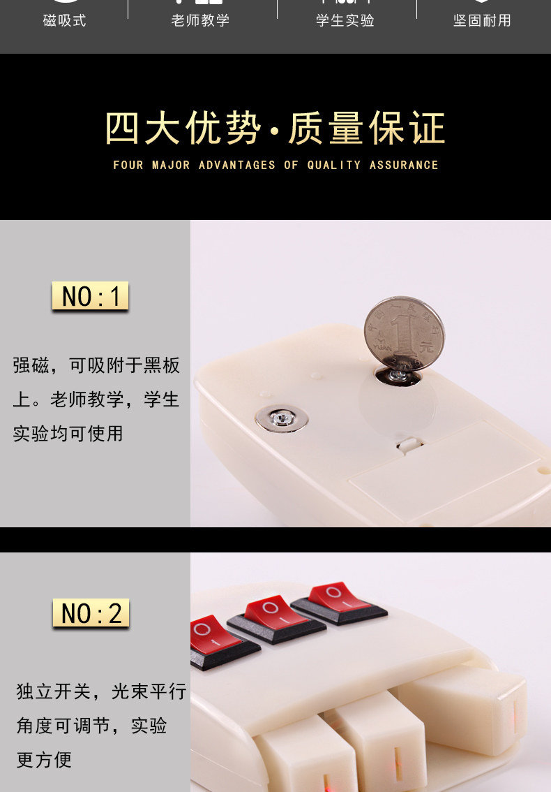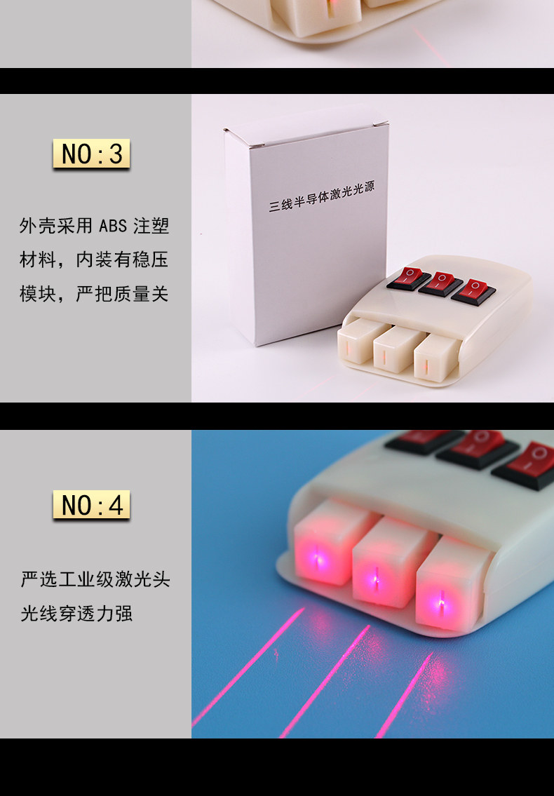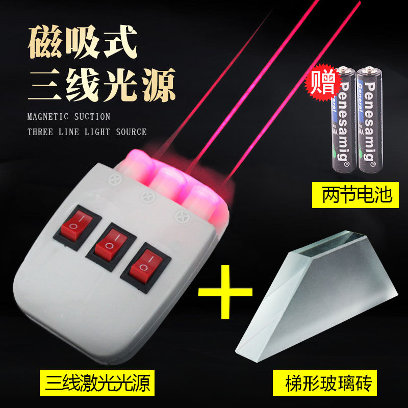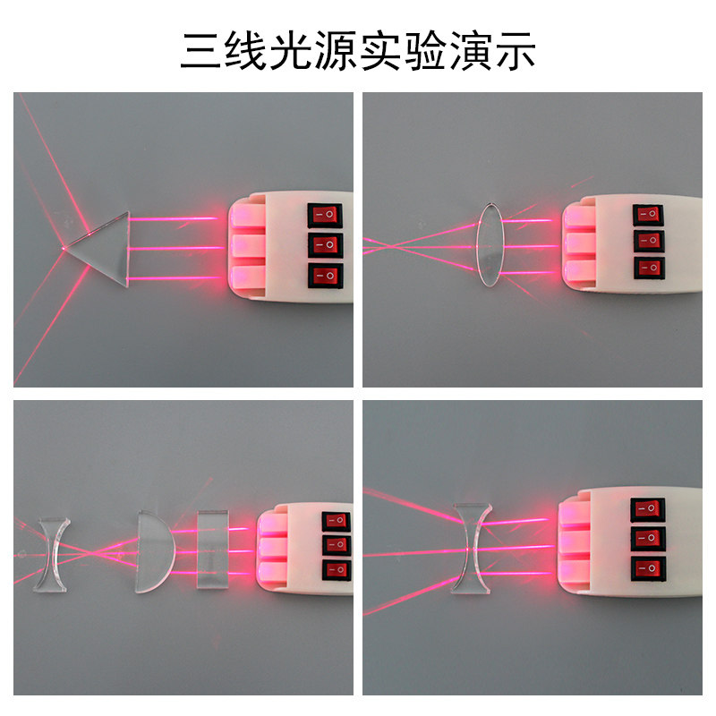 教学用激光平行光源物理实验 磁吸式三线光束半导体平行光源器教学演示仪器可见光三线激光光源三路激光笔
