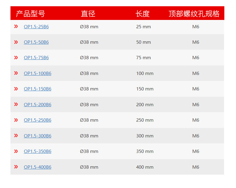| OP1.5-250B6【L=250 mm】 | ¥ 登录可见 | ¥ 登录可见 | 9999 件 | 776372009120 |
