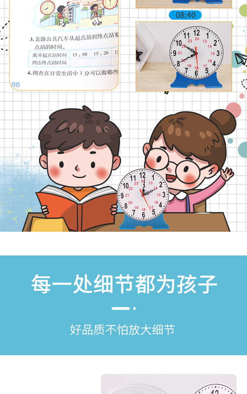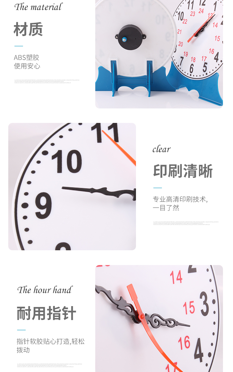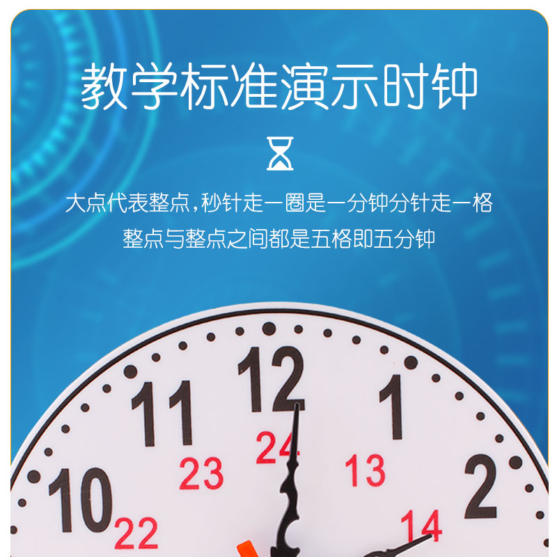 时钟教具 钟表模型小学钟面学具认识时钟学生用三针联动12时24时小学教学演示用大号认识时间儿童启蒙教师