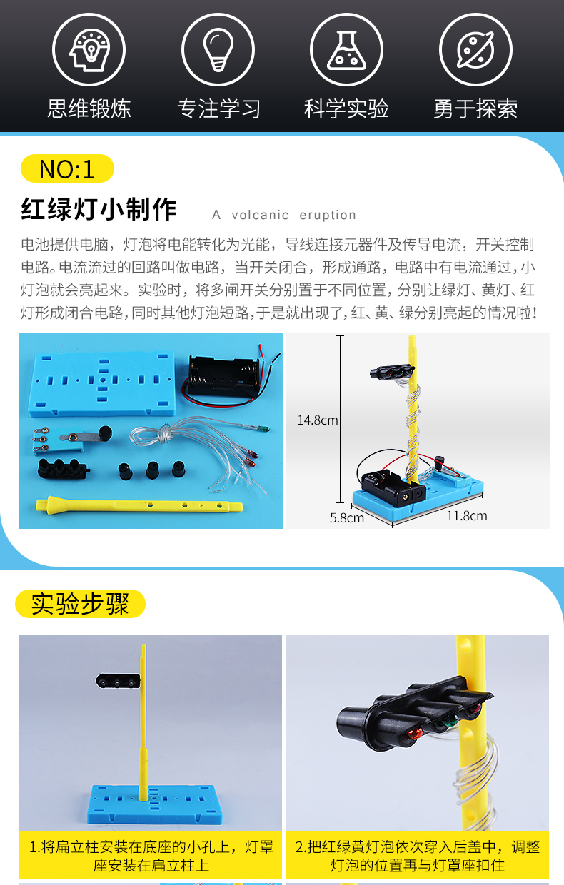 儿童红绿灯电路拼装小制作发明stem小学生物理科学教育实验制作趣味科技手工DIY材料包