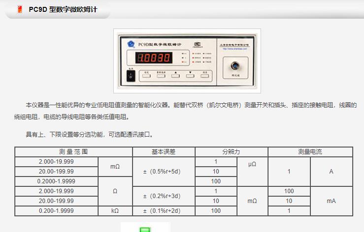 安标PC9D数字微欧姆计 低电阻测试仪 六档自动/手动量程带分选功