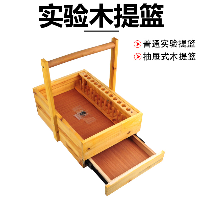 木质提篮手提式试剂提篮物理化学生物小学科学实验室提篮试剂瓶托盘教学仪器实验器材教具带试管架