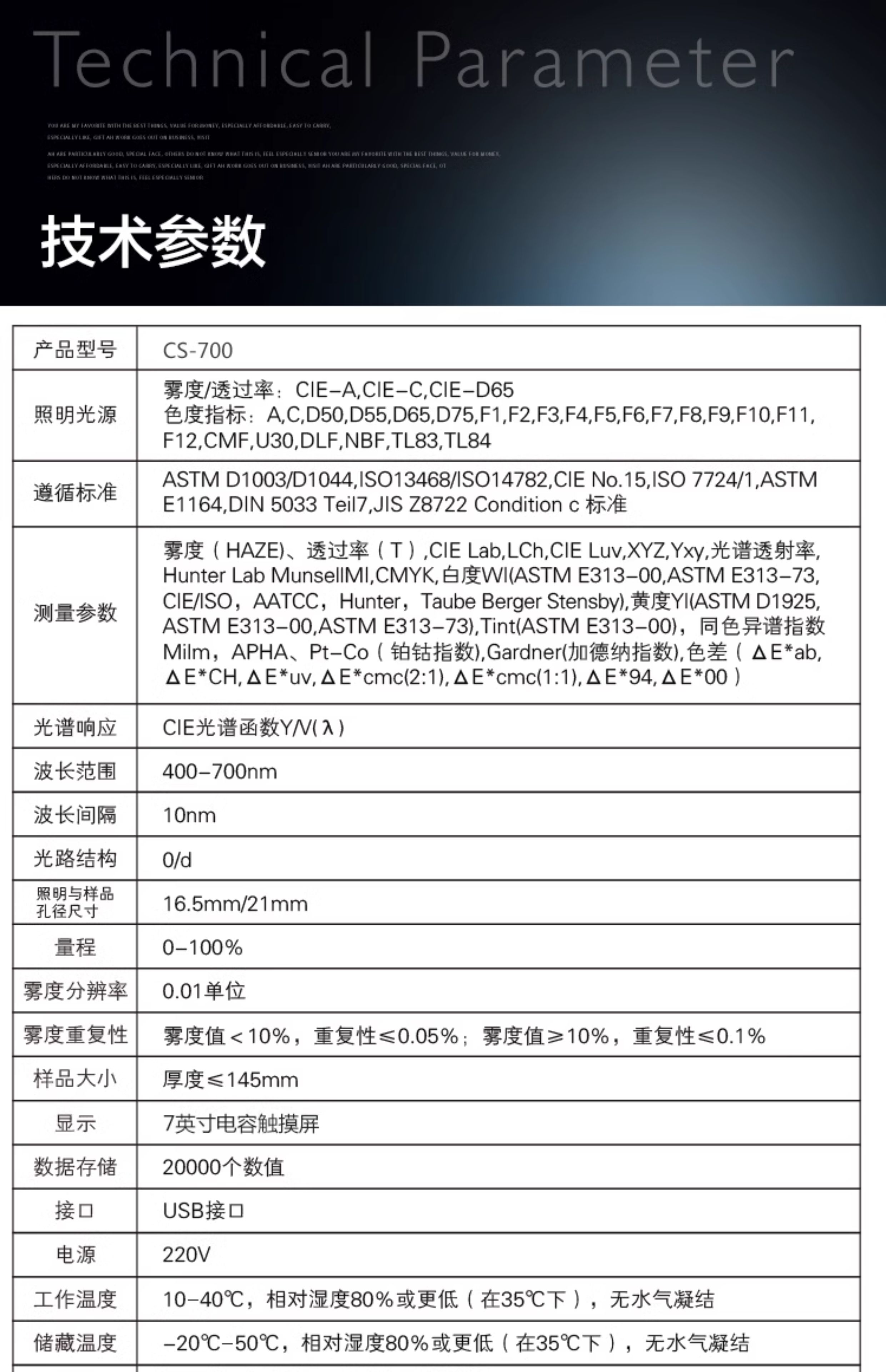 色彩雾度仪CS-700雾度检测 透光率检测 透射色度检测