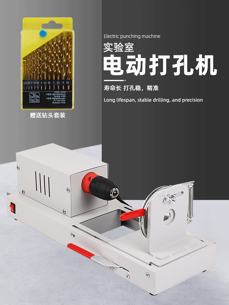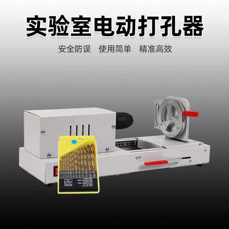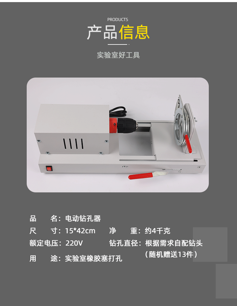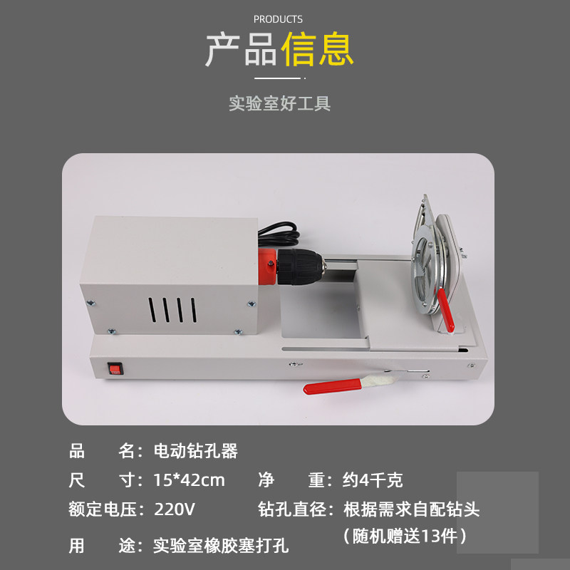 电动打孔器实验室教学桌面电钻橡胶塞钻孔器教学物理化学实验器材教具开孔器送钻头套装02006 卧式