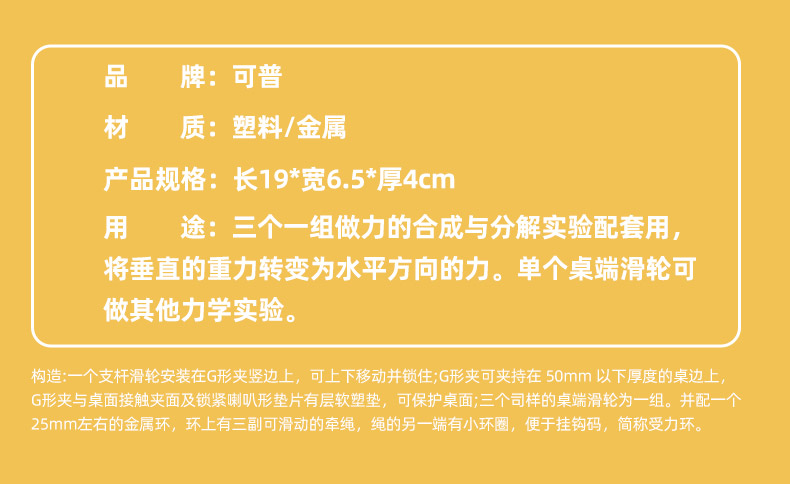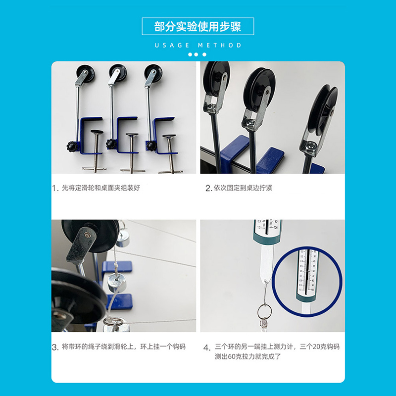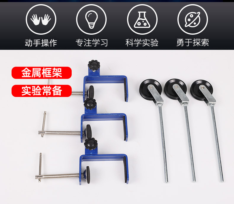 支杆定滑轮和桌边夹组初高中物理力学分解合成实验器材桌边支杆定滑轮组U形金属紧固定夹学生分组演示教具