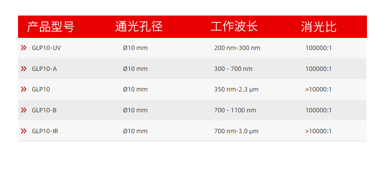| GLP10-B【通光孔径?10 mm/工作波长700 - 1100 nm】 | ¥ 登录可见 | ¥ 登录可见 | 9999 件 | 867998574835 |