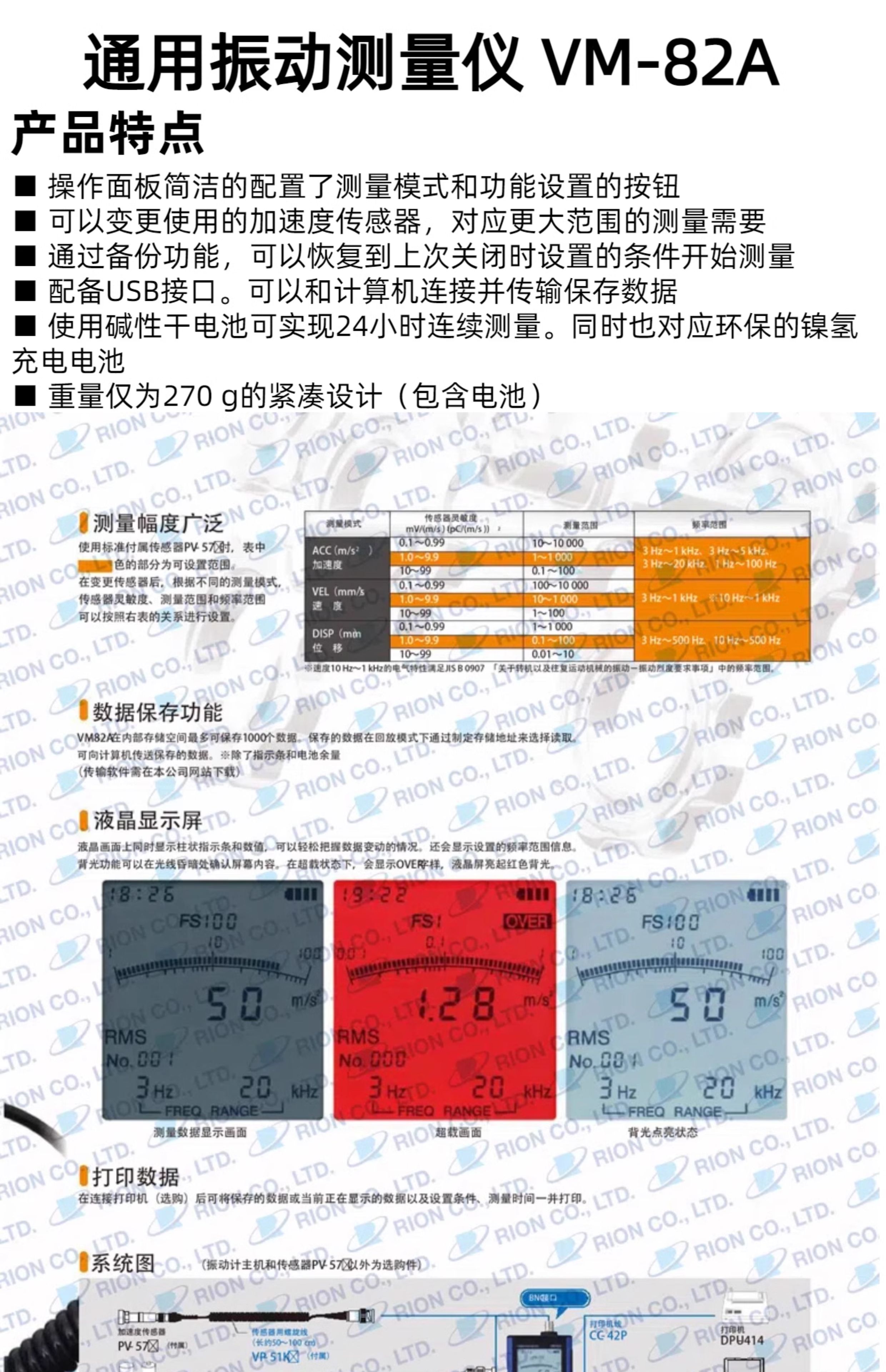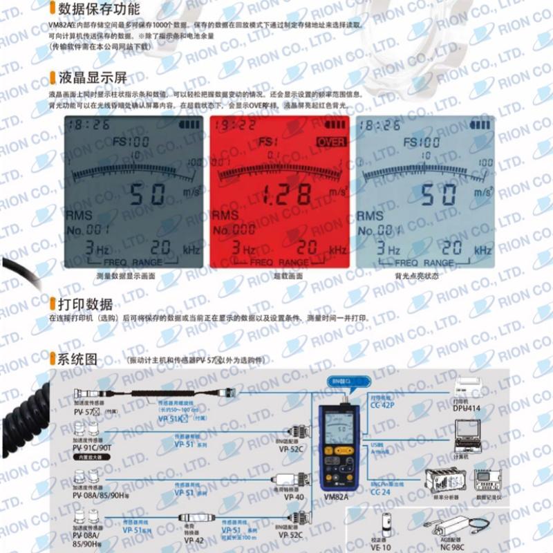 日本理音通用振动测量仪 VM-82A超大液晶屏,按键布局便于操作