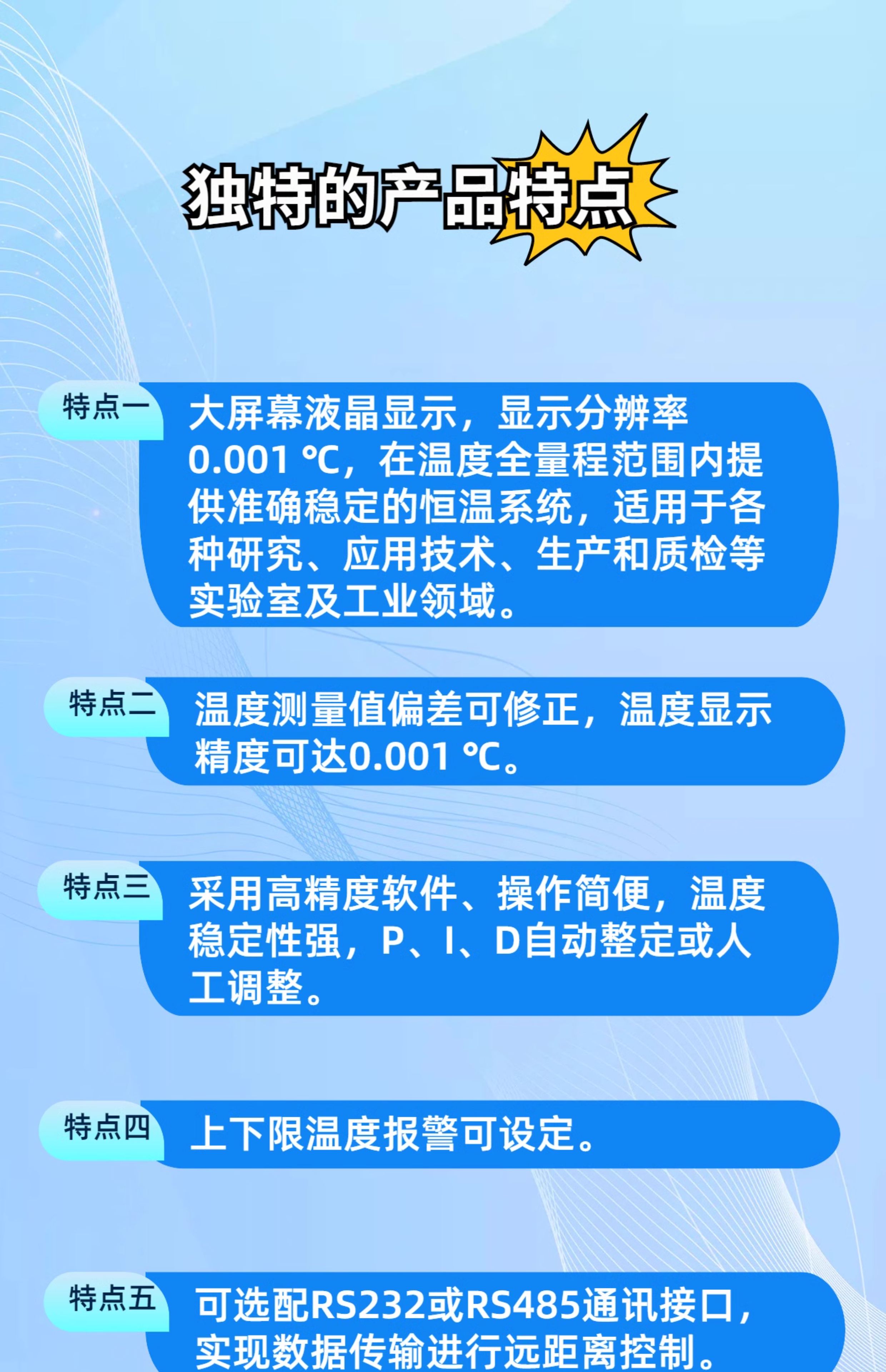 高精度恒温槽大屏幕液晶显示,显示分辨率0.001 ℃温度稳定性强