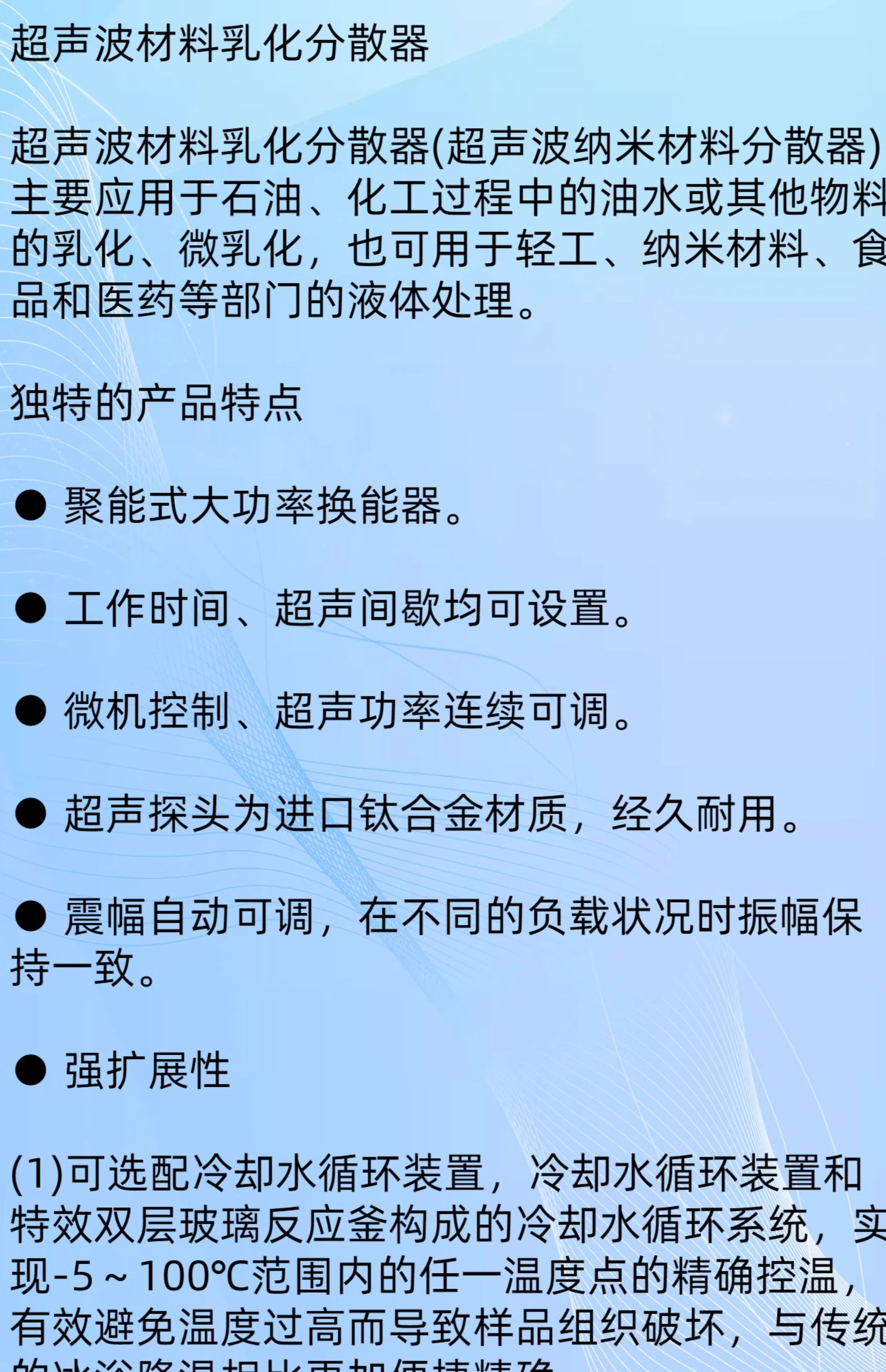 超声波材料乳化分散器微机控制、超声功率连续可调 震幅自动可调