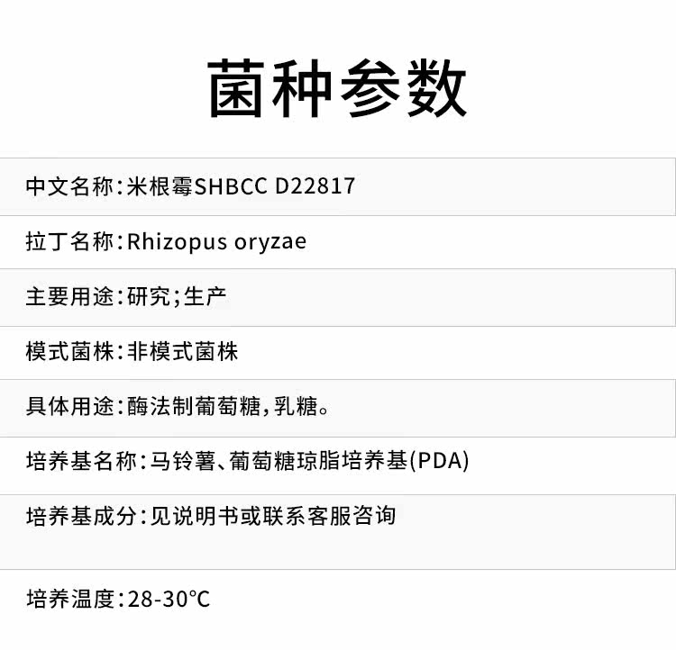 米根霉AS 3.851冻干粉发酵法制乳糖葡萄糖马铃薯葡萄糖培养基活化