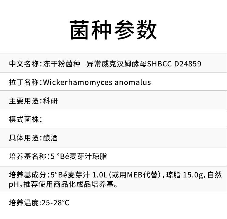 异常威克汉姆酵母SHBCC D248595 °Bé麦芽汁琼脂培养基25-28℃