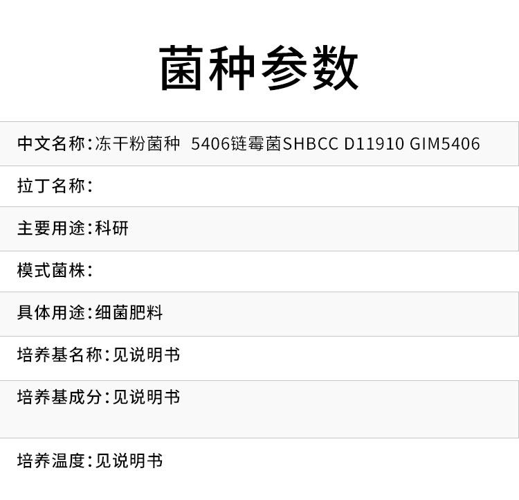 5406链霉菌SHBCC D11910 冻干粉用于科研及细菌肥料4-10度保存