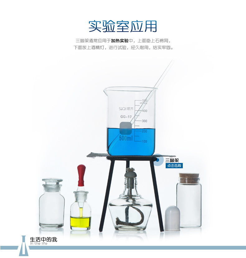 三脚架可升降三角架铁质三脚架锥形烧瓶架酒精灯加热架初高中化学实验加热仪器实验室烧杯支架tripod