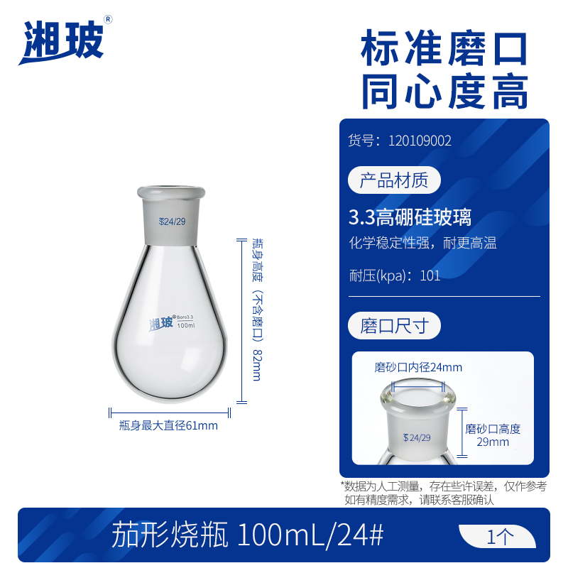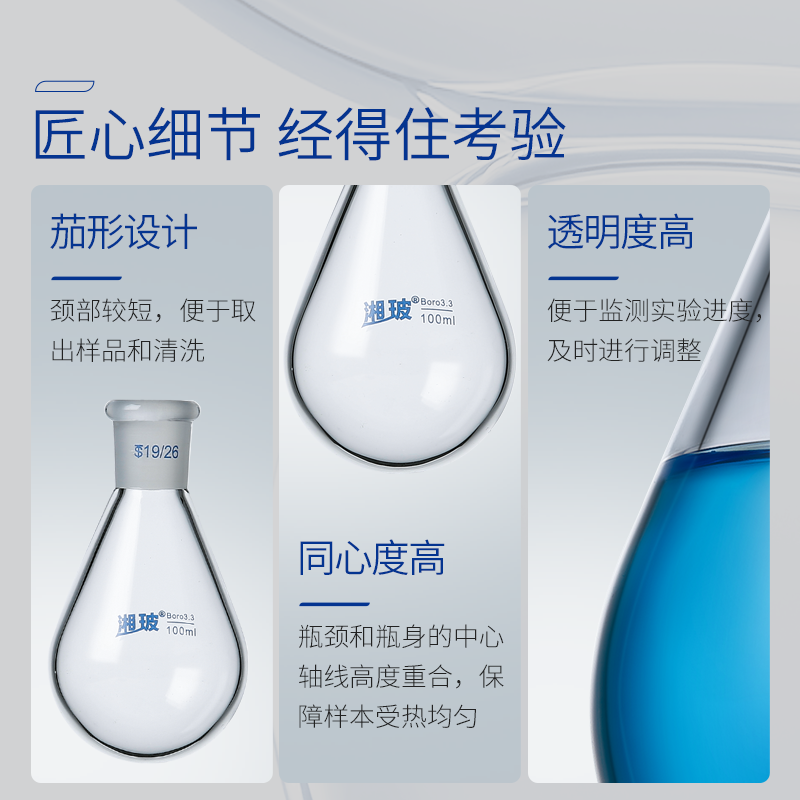 湘玻茄形烧瓶高硼硅玻璃标口颈实验室加热反应瓶耐高温旋转蒸发仪收集瓶100 250 500 1000毫升