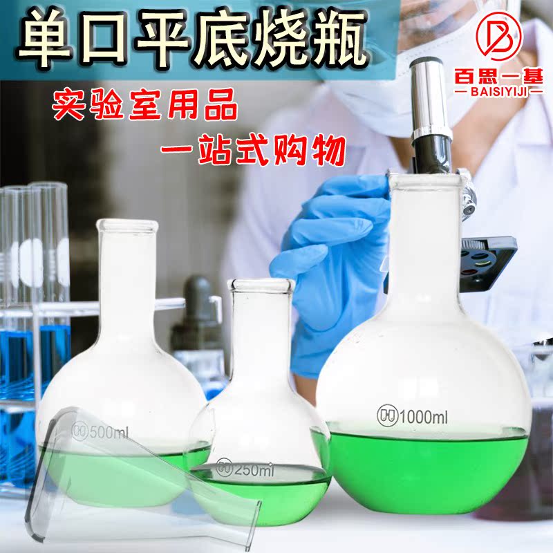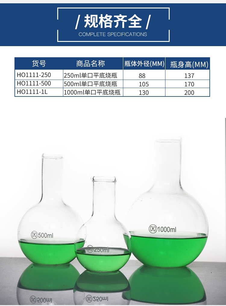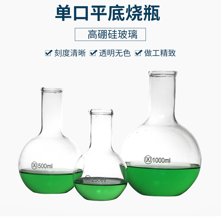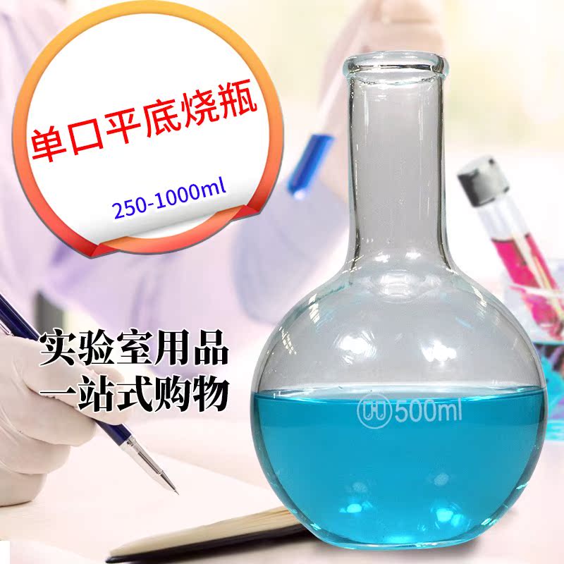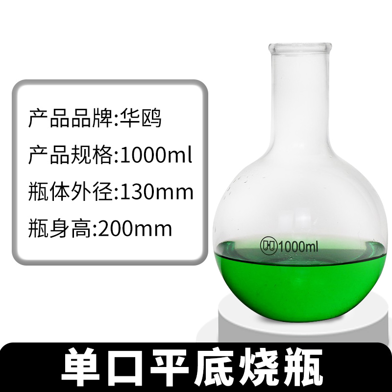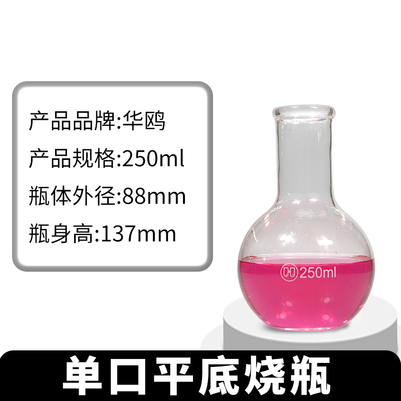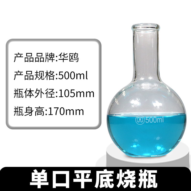 华鸥 250ml 500ml 1000ml单口高硼硅玻璃平底烧瓶 长颈短颈