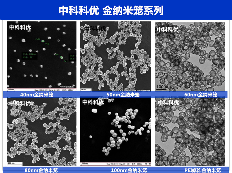 中科科优 PEI修饰金纳米笼 40nm-100nm 科研级 金纳米笼溶液胶体