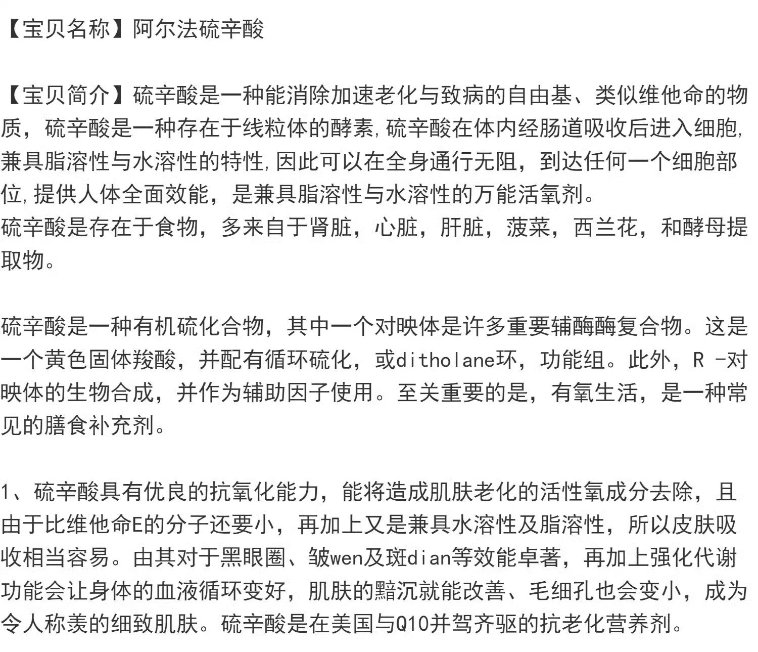 直销a-硫辛酸粉食品级清除自由基抗氧化剂健身营养补充剂正品包邮