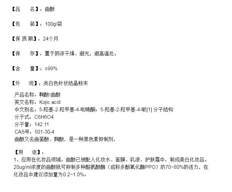 曲酸粉末美白淡斑抑制黑色素食品级99%高含量化妆品原料50g包装