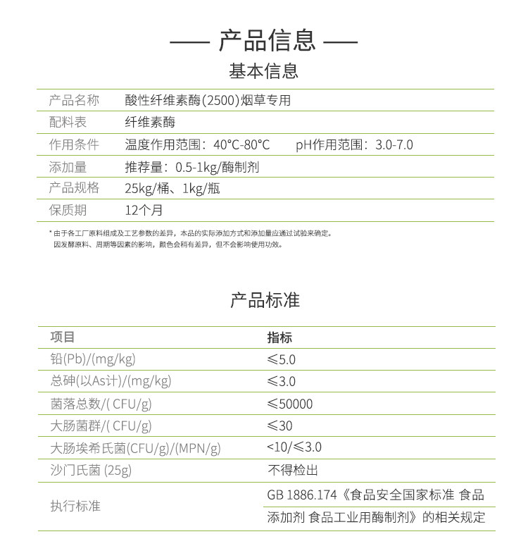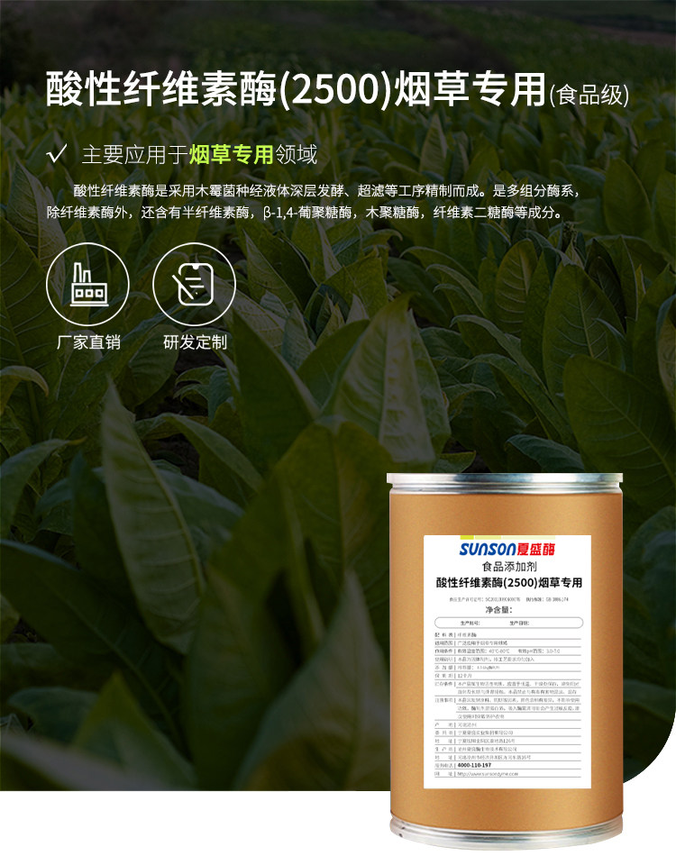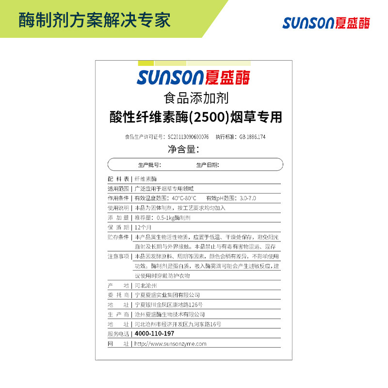 夏盛 酸性纤维素酶 烟草加工用酶 固体食品级添加剂 烟叶软化酶制