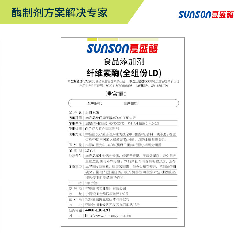夏盛食品级纤维素酶(全组分LD)槟榔酶 槟榔植物提取酶食品添加剂