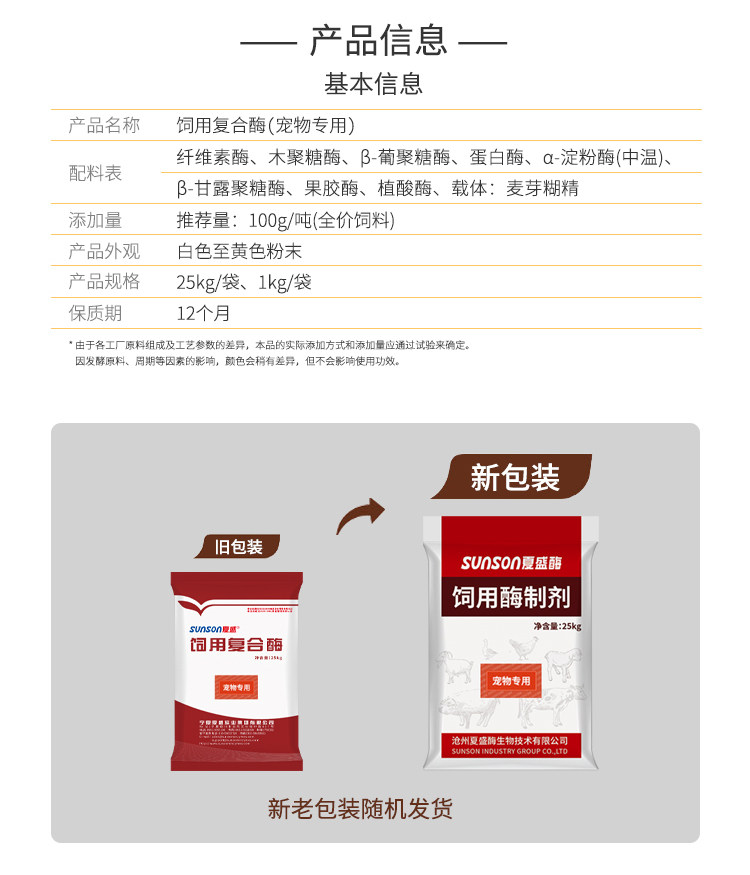 夏盛饲料级宠物专用复合酶 猫狗口粮 提高消化免疫 固体酶制剂