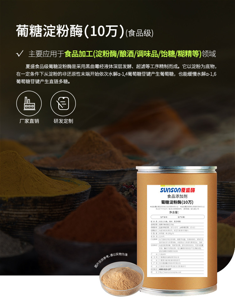 夏盛食品级葡糖淀粉酶(10万) 淀粉糖酿酒调味品饴糖用酶