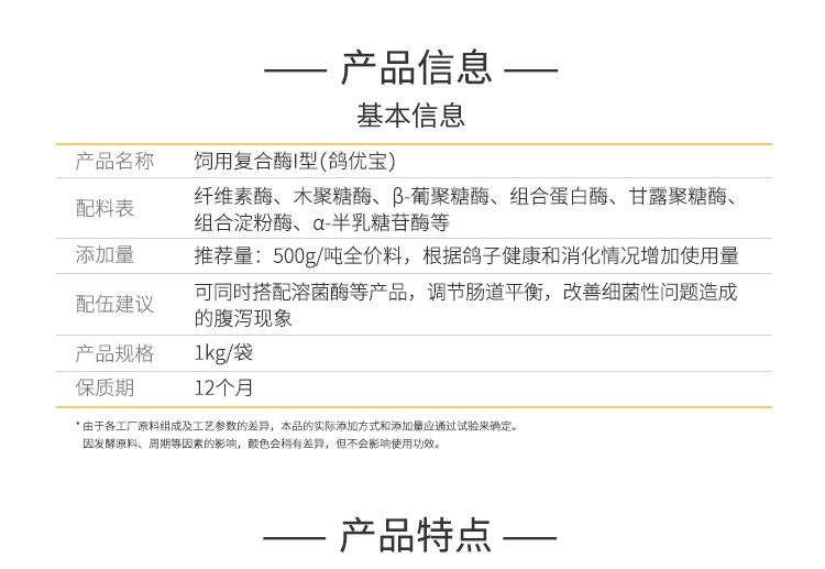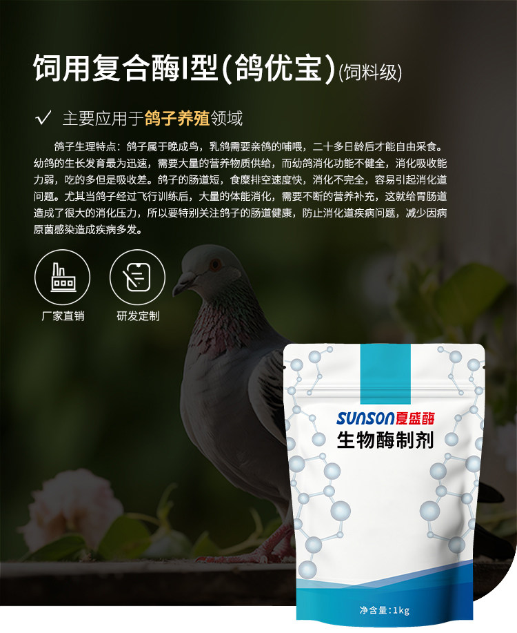 夏盛鸽优宝 饲用复合酶I型 鸽子粮食观赏鸟食营养 饲料添加剂包邮