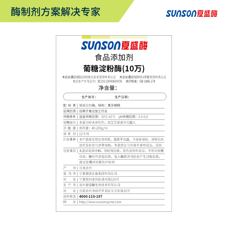 夏盛食品级葡糖淀粉酶 固体10万酶活 淀粉糖酿酒调味品饴糖用酶