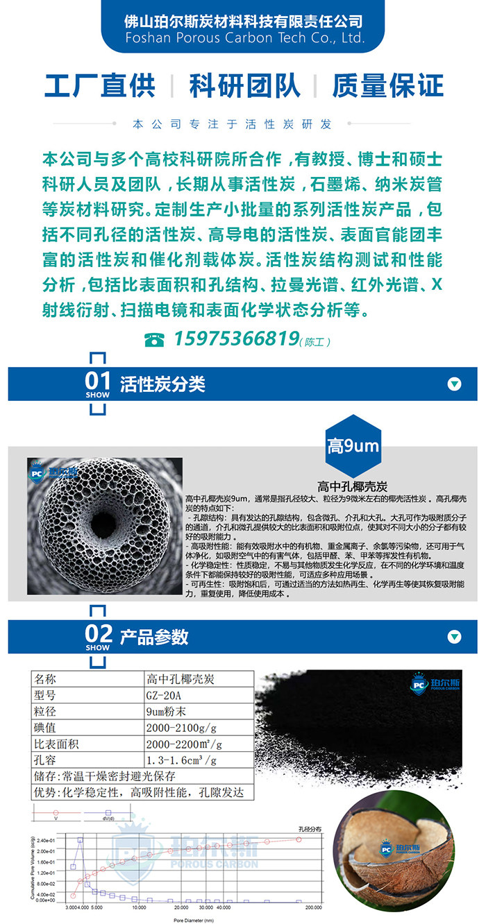 高中孔椰壳炭9um孔隙结构发达 高碘高比表面 微孔储氢 余氯净化