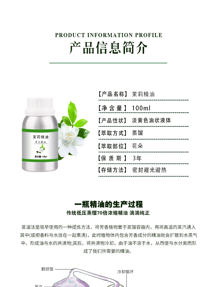 茉莉精油10ml-1000ml护肤单方植物提取护肤香薰美容院刮痧按摩