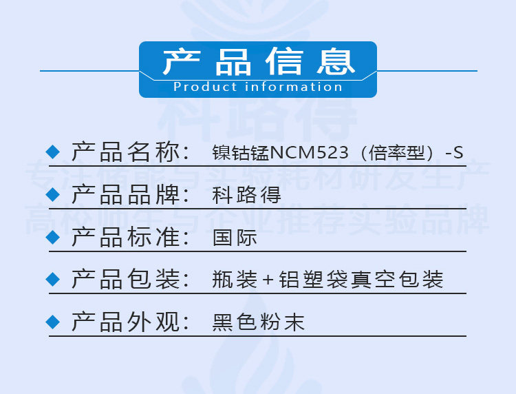 镍钴锰NCM523(倍率型)-S 多晶/三元锂离子电池正极材料
