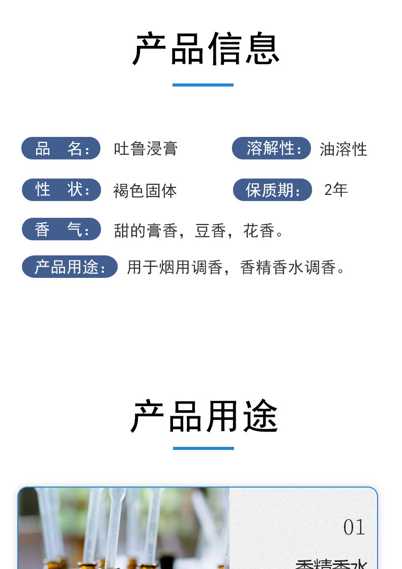 吐鲁浸膏香精香水烟用日化调香植物萃取香料提取物