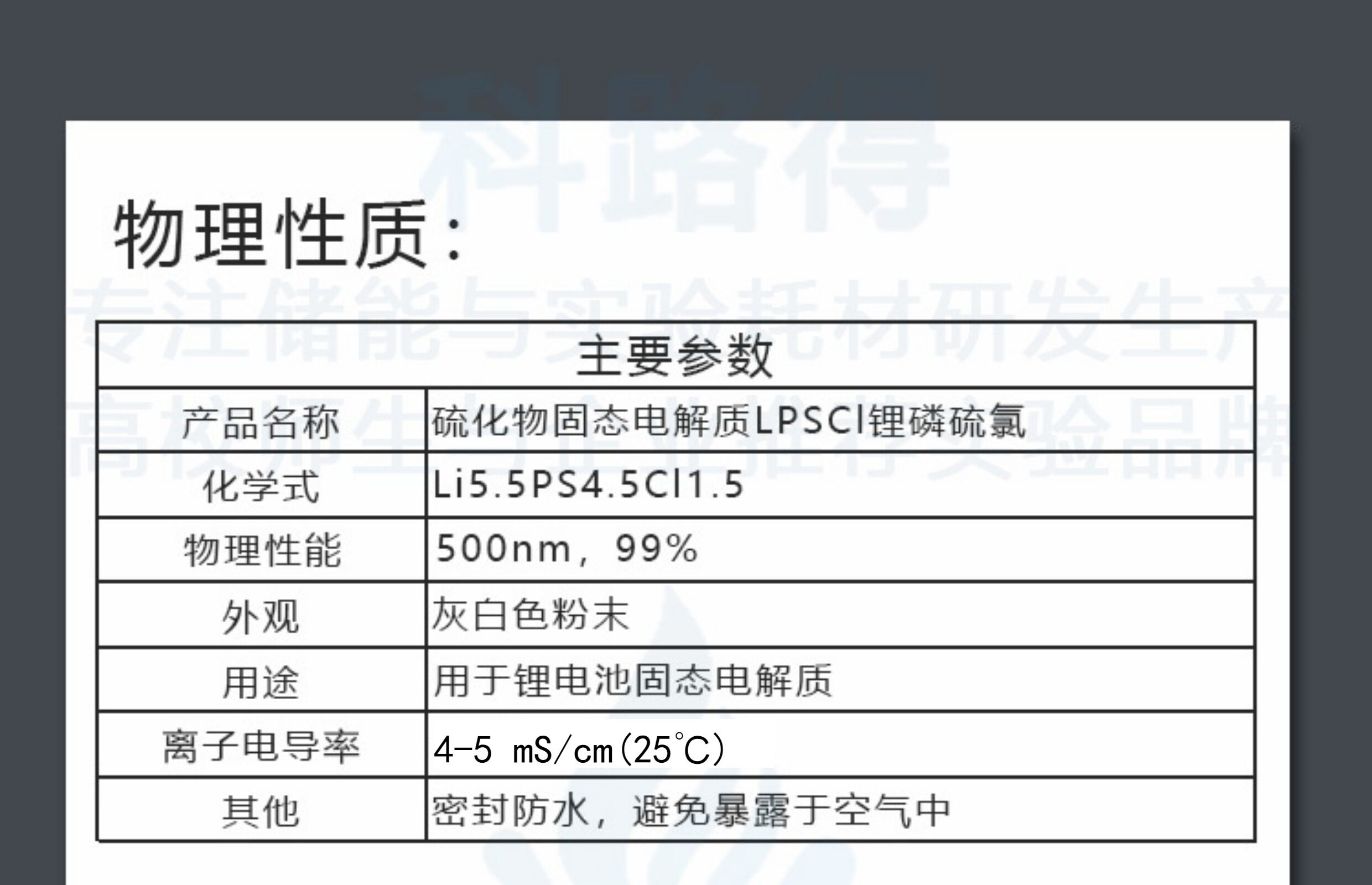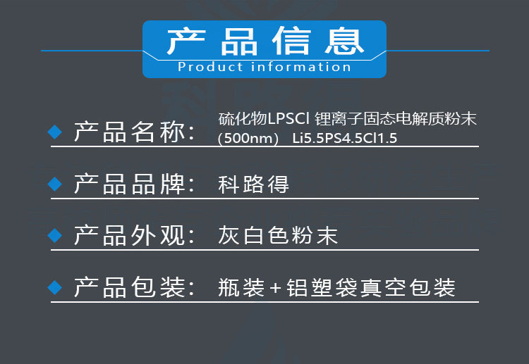 硫化物LPSCl 锂离子固态电解质粉末500nmLi5.5PS4.5Cl1.5电池材料