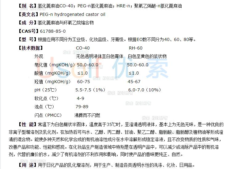 PEG-60氢化蓖麻油 RH60 100ml 500g
