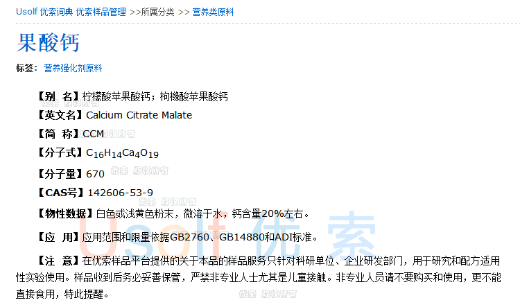 果酸钙 柠檬酸苹果酸钙 100g /袋 500g/袋