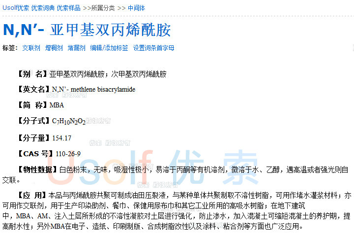 N,N'-亚甲基双丙烯酰胺 MBA 次甲基双丙烯酰胺 100g/袋 500g/袋