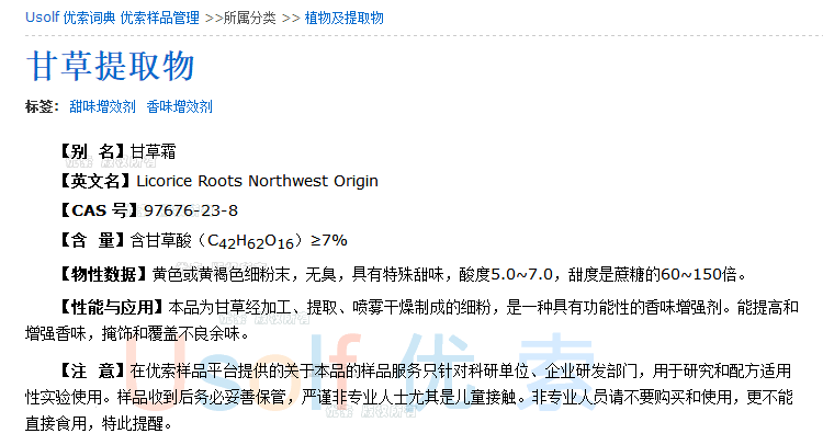 甘草提取物 甘草酸含量≥7%  100g/袋 500g/袋
