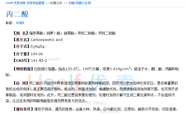 丙二酸 缩苹果酸 胡萝卜酸 100g 500g