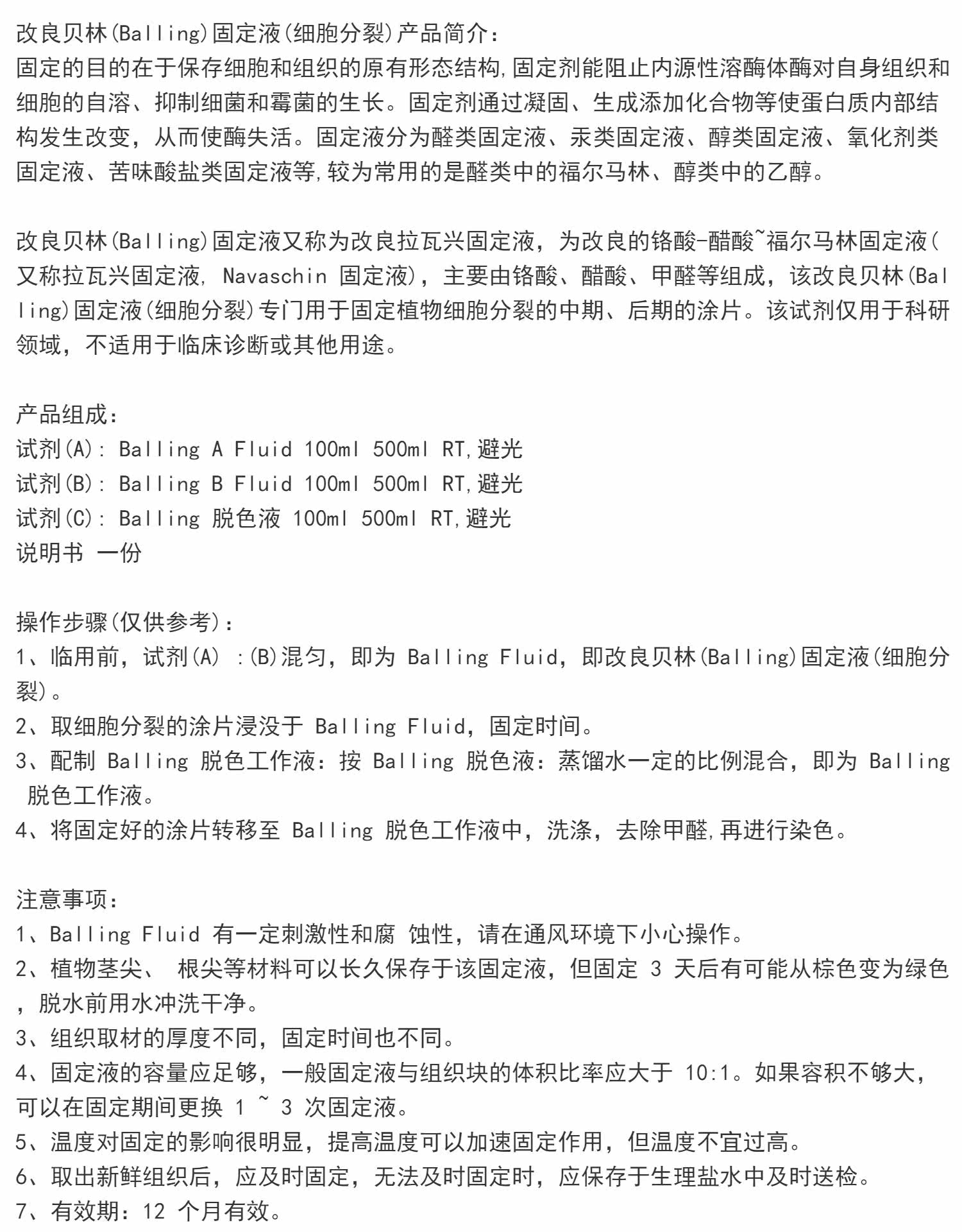 改良贝林(Balling)固定液(细胞分裂) 实验科研试剂 百克赛斯生物