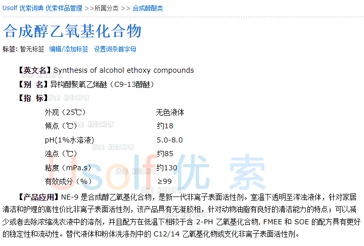 合成醇乙氧基化合物  C9-13醇聚氧乙烯醚 异构醇聚氧乙烯醚 NE-9