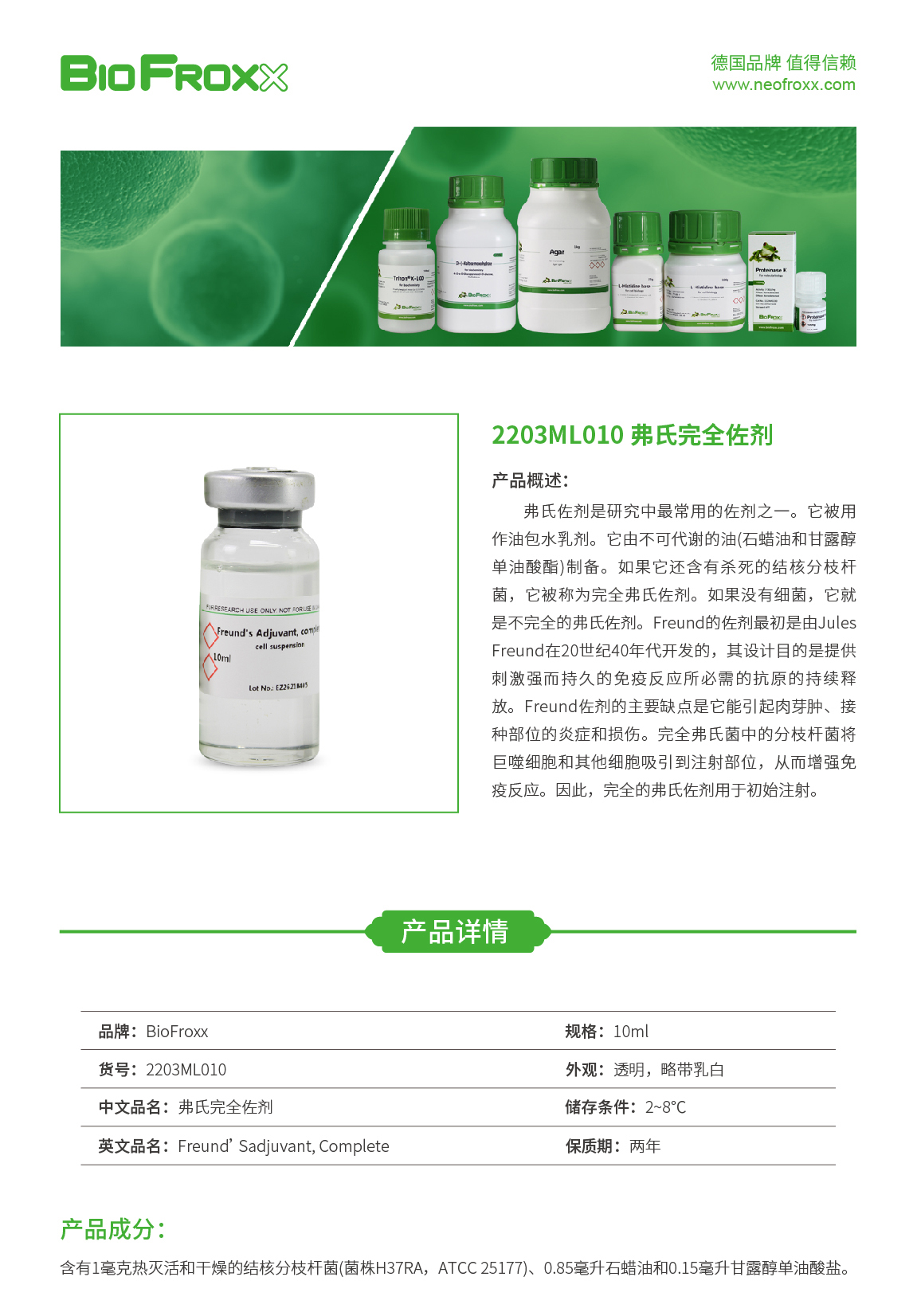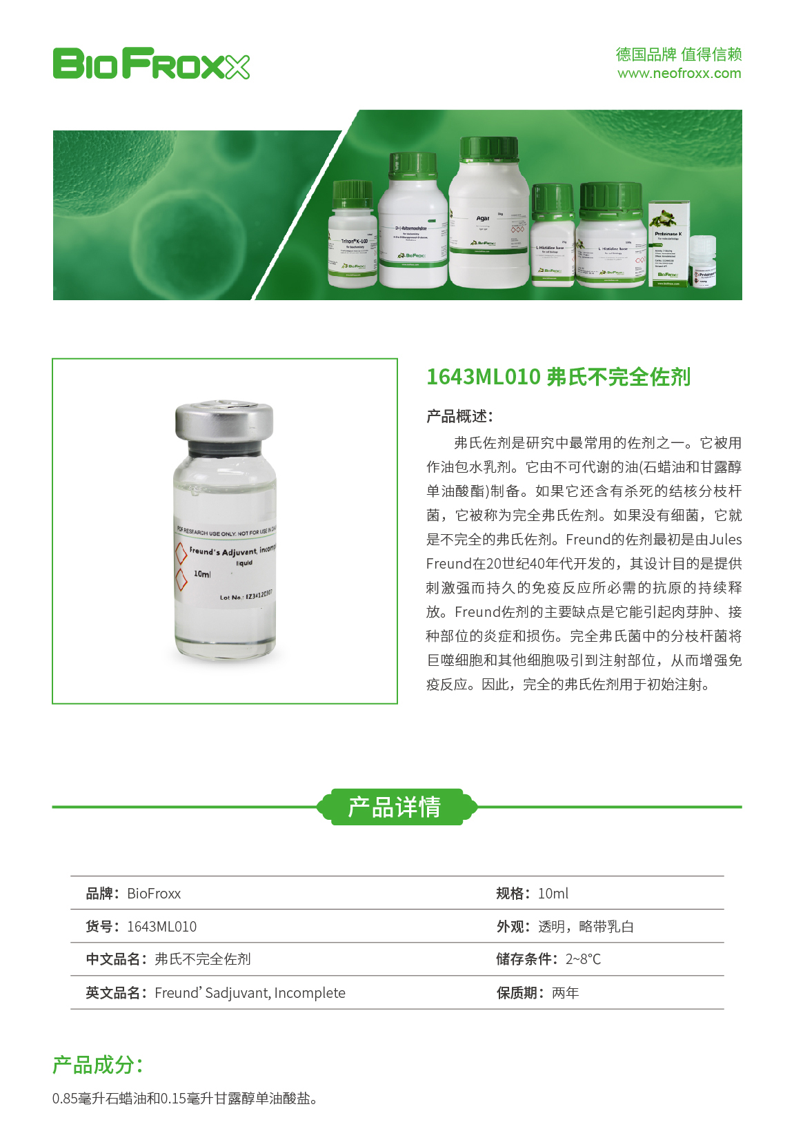 德国BioFroxx 1643ML010 弗氏不完全佐剂 2203ML010 弗氏完全佐剂