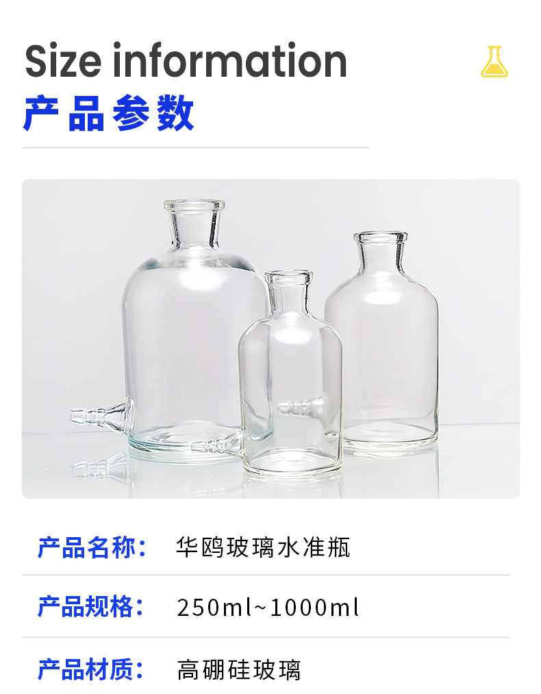 玻璃水准瓶 250ml/500ml/1000ml 下口瓶 气体分析 放水瓶 实验室玻璃器皿 教学仪器 玻璃仪器
