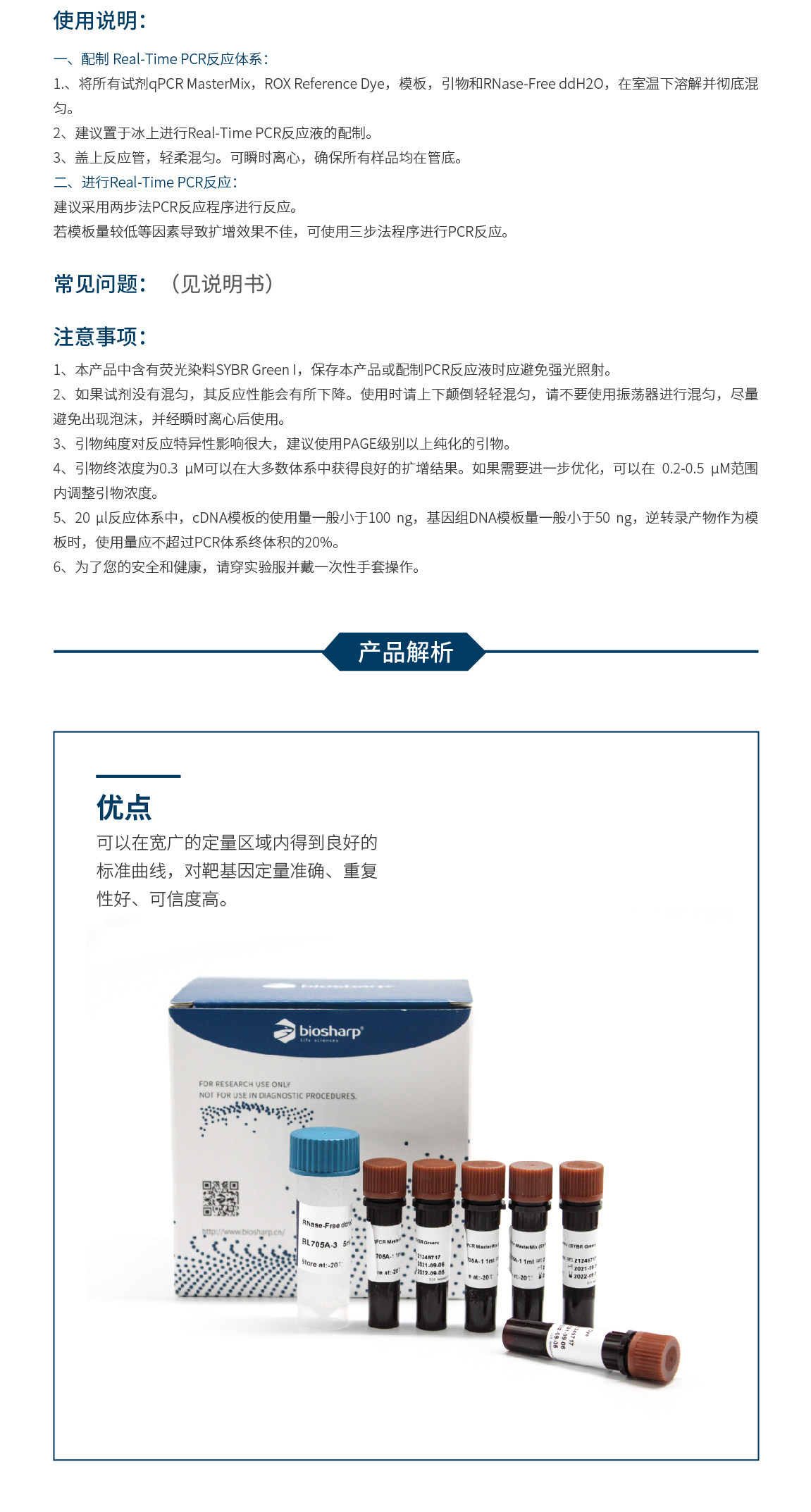 Biosharp BL705A 快速荧光定量PCR试剂盒 SYBR Green嵌合荧光法